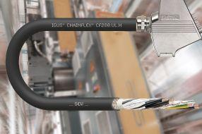 igus has introduced a flexible cable for use in energy chains that delivers motor power and feedback functions through a single cable. The new CF280. UL.H cable is a hybrid servo cable compatible with motors and drives from over 39 manufacturers. CF280.UL.H has been tested inside an energy chain with a seven-times bend radius for up to eight million cycles. igus.com