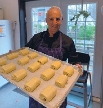 Azzi says the dough is allowed to rest overnight. The next day it is laminated using a European butter containing 84 per cent milk fat. “The lamination process consists of a double fold, and then a single fold, while allowing the dough to rest for 30 minutes, in the fridge between folds. Next, the dough is shaped into our signature croissants and put in the freezer to rest. On the third day the croissants are