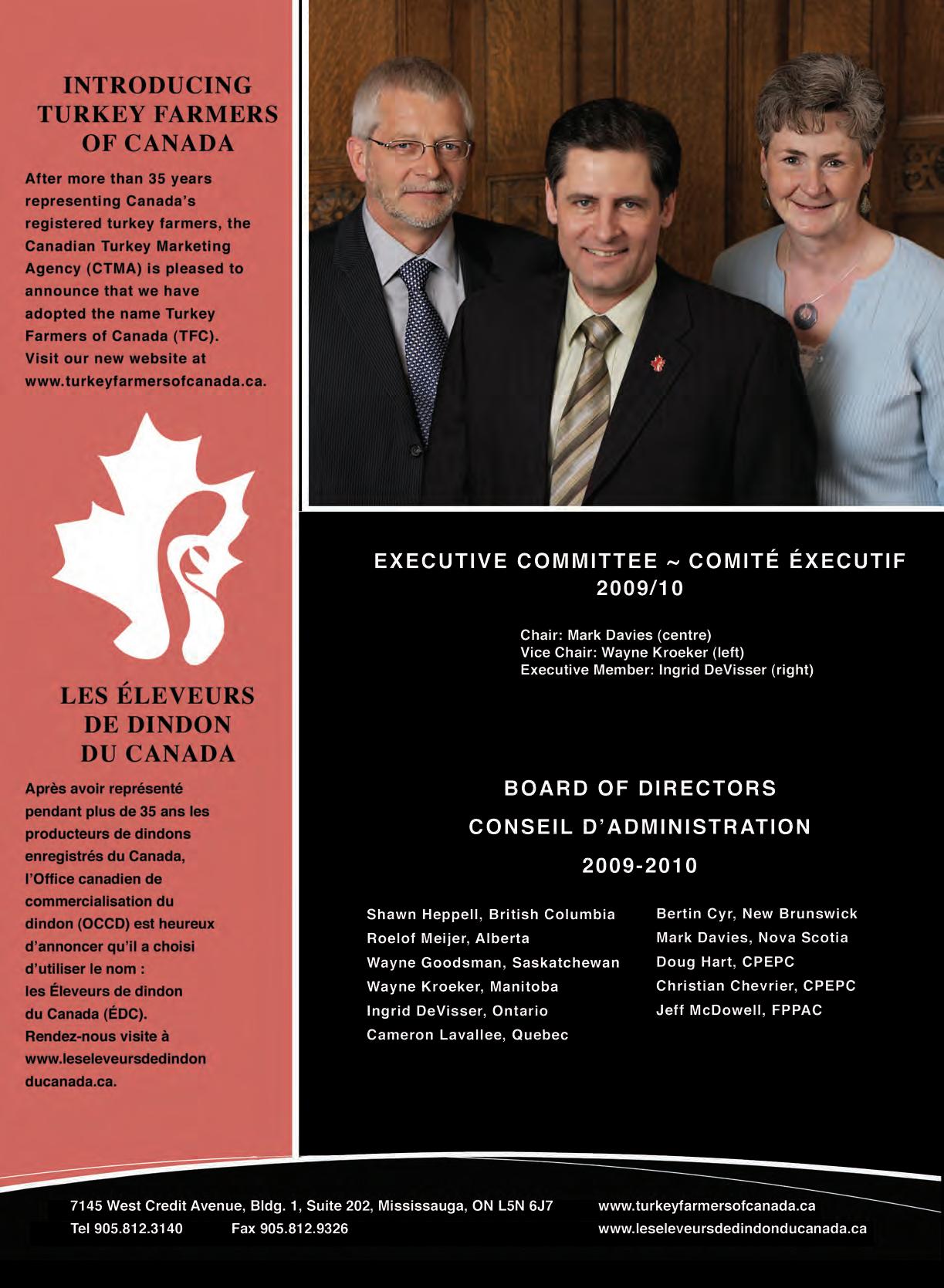At the Advisory Committee meeting, at the Canadian Hatching Egg Producers (CHEP) annual meeting the committee recommended a revised 2009 allocation of 1,019 million kilograms and initial 2010 allocation of 1,029 million kilograms and were approved by the board of directors. Saskatchewan and Alberta have recently signed contracts with CHEP, increas-