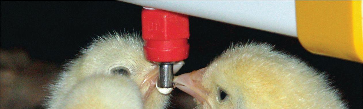 1) Large bottom pin that holds a drop of water to attract day old birds to nipple / great starts / average first week mortality below 1%.