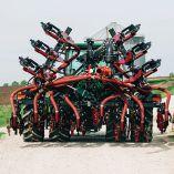 ProPush hydraulic push box spreader family, but features new upgrades and a greater heaped capacity of 600 cubic feet. The all-steel welded frame on the HP 160 provides a solid foundation for the spreader’s sides and floor. The solid weld-in tongue is cross-braced for strength and rigidity, while the updated pusher design has increased the clearance between the tractor and implement for greater maneuverability. VertiSpread vertical beaters equipped on the Kuhn Knight HP 160 provide customers with a uniform 25-30-foot