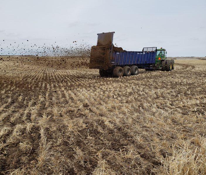 The reason Saskatchewan is so interested in precision manure application is the variability in this province’s soils. Factors that cause this variability include landscape and parent material variations that cause fluctuations in available nutrient and organic matter content in the province’s farm fields. Since cattle manure adds both organic matter and nutrients to these fields, “we theorized that there would be a benefit in applying more cattle manure to those areas of the test field that were lower in organic matter and low in nutrients, while cutting back or eliminating application in those parts of the field that already had plenty of organic matter and high levels of available nutrients,” says Shoenau, who is also the Saskatchewan Ministry of Agriculture soil nutrient management chair in USask’s department of soil science, College of Agriculture and Bioresources. “So that was the strategy that we took – comparing a traditional manure application where you just apply a constant rate across the field to a precision approach where manure application is varied across the landscape. Another part of our precision cattle manure application treatment was that we employed setbacks from areas in the field where water would accumulate from spring snowmelt runoff or heavy rains. Those were areas of the field that we did not apply any manure at all.”