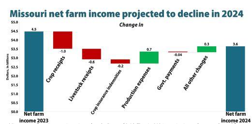 percent). Cattle and hog cash receipts could also see recovery in the next calendar year, along with Missouri farm income in general. Production expenses are forecast to decrease by five