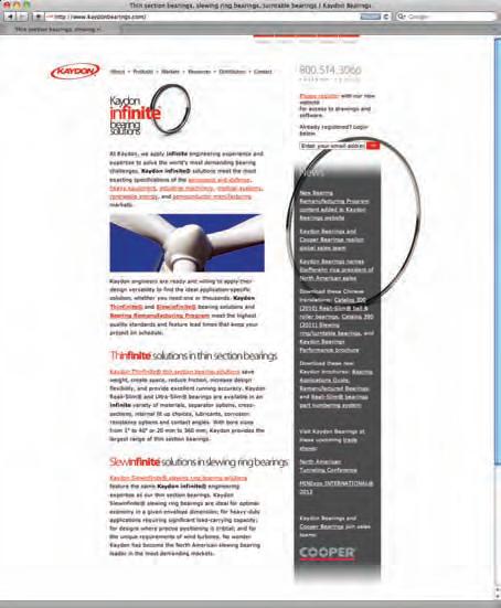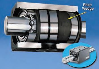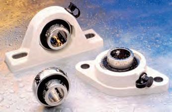 On page 30, What’s New in Bearings highlights bearings that fight corrosion, not just by using stainless steel, but also by applying thermoplastics (Kilian, item 372), or special plating, such as cadmium (Accurate Bearing, item 371). Timken, in item 376, notes an average increase of 10% in the load ratings for its tapered roller bearings, while Kaydon