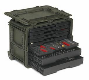 can accommodate foam cutouts for tool control and accountability. Two configurations are offered: two 2-in. drawers plus six 1-in. drawers, or three 2-in. drawers plus four 1-in. drawers. The chest is available in black, olive, tan and orange.