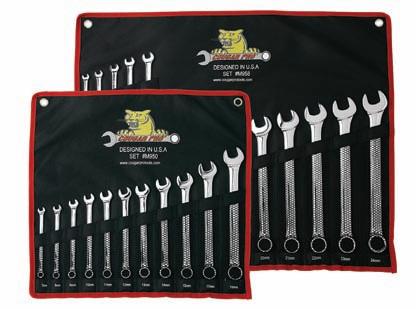tion wrenches are available in two SAE sets and two metric sets. The 11-piece SAE set (E911) and the 14-piece SAE set (E914) consist of wrenches ranging in sizes from 3/8 in. to 1-1/4 in. The 11-piece metric set (M950) and the 18-piece metric set range in size from 7 mm to 24 mm. The reversible-ratcheting combination wrenches are available in two sets, comprising one SAE and one metric set. The eight-piece SAE set (E8SRCW) consists of wrenches ranging in sizes from 5/16 in. to 3/4 in., while the eight-piece metric set (M8MRCW) ranges in size from 8 mm to 19 mm. Wright Tool Online Reader Inquiry No. 872