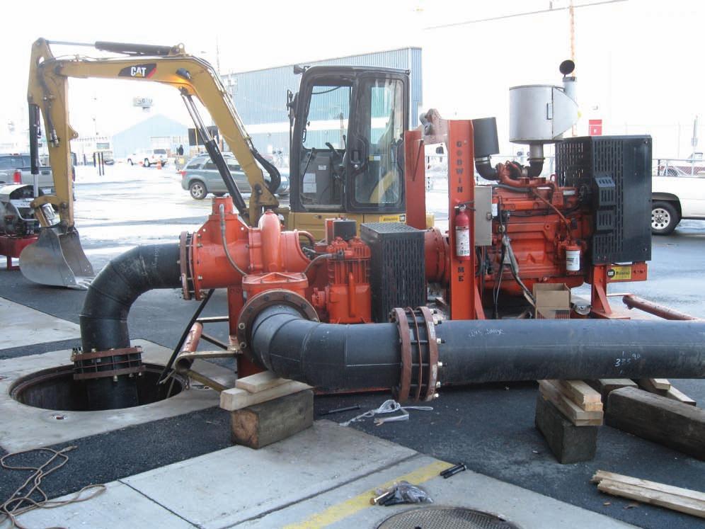 ‘Since one of the two cranes built into the wet well for removing the pumps had drowned, crews had to bring in manual hoists to lift the pumps one-by-one.’