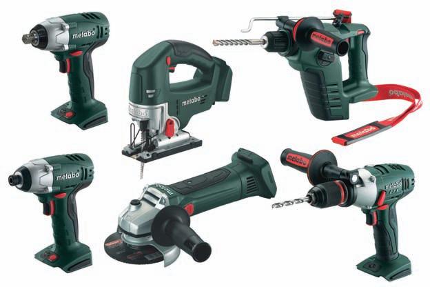 Metabo offers six of its 18-V PowerMaster series cordless power tools for purchase without the battery. The BHA18 rotary hammer, SB18 LTX hammer drill/driver, SSD18 impact driver, SSW18 impact wrench, STA18 cordless jig saw and the W18LTX cordless angle grinder are all powered by the company’s 18 V, 3.0 Ah Li-Power Ex treme batteries, which can be shared by all six tools. The lithium-ion batteries are compatible with the ASC30 30-min. air-cooled charger. Because the batteries are interchange able among the tools, operators can carry additional tools without the need for several extra batteries.