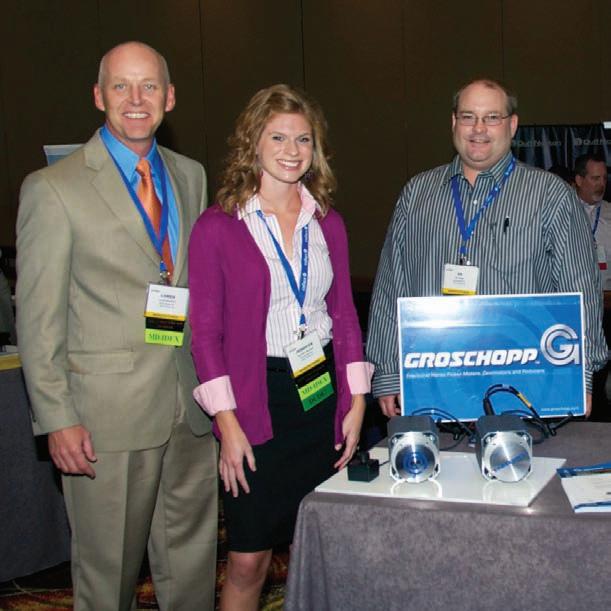 1. Charlie Banta of Isostatic Industries, Tim Breen of Motion Industries and Doug Savage of Bearing Service Inc. attended PTDA’s Motion Control Showcase. 2. Carol and Cliff Bannon of Climax Metal Products. 3. Steve Varano and Mike Catania of Leeson Electric/Grove Gear. 4. Mitch Bouchard, General Bearing Service, was elected president of the PTDA for 2012. 5. Brian and Karen Short of Kaydon Corporation. 6. Marco De Maria of the Shaeffler Group displayed bearing products from INA, FAG and Barden at the Motion Control Showcase. 7. Kelly Barker of Commercial Solutions and Tom Karch of SKF Canada, with Ken Yamasaki and Mitch Bouchard of General Bearing Service. 8. Loren Kamstra, Jennifer Dorhout and Ed Tullar of Groschopp Inc. 9. David Zoesch of Shaeffler Group USA and Wayne Law of Motion Industries. 10. John and Debbie Miles, RotoPrecision Inc. 11. Eric Klein of Lenze-AC Tech demonstrated products during the Motion Control Showcase. 12. Terry Bell of Baldor Electric showed a demo application at the Motion Control Showcase. 13. Keynote speaker Alan Beaulieu of the Institute for Trend Research predicted growth in industrial markets over the next couple of years. 14. Kevin Powers of US Tsubaki Power Transmission, Keith Nowak of MPT Drives and Jeff Lindsay of Torque Drives.