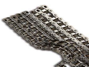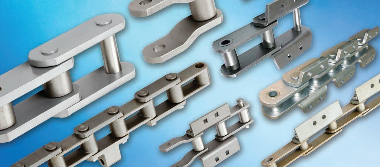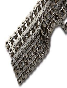 2082, and British Standard single-strand sizes 06-12. ANSI sizes are available in packaged lengths of 10 ft, 50 ft and 100 ft, and British Standard chains are packaged in 10-ft lengths.