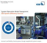 KSB’s System Efficiency Services (SES) is a comprehensive analysis of pump and piping system performance, based on measurements made at a customer’s plant. Multi-parameter data collection, backed up by KSB’s expertise, help solve performance problems and uncover opportunities for improved energy efficiency. Find out more from the free brochure. For more information visit http:// www.ksb.ca Brochure/flyer also available via call-in at KSB Canada 905 5689200. Online Reader Inquiry No. 144