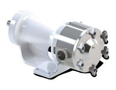products. This series of positive displacement pumps, from 1 gpm to 320 gpm, has only one shaft and one shaft seal, simplifying and reducing costs of installation, operation and maintenance. With radiused internal angles, polished stainless steel surfaces, O-ring sealed joints and a behind-the-rotor seal, the pump eliminates areas of product entrapment, while its easy-toremove head, rotor and front-loading seal enables COP (Clean-Out-of-Place) cleaning methods. The series offers opposite porting in either horizontal or vertical configurations, as well as 90-degree ports for mounting directly under tanks with side discharge.