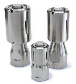 threaded bottom ring. The chocks can be supplied in a wide range of configurations, standard and extended chocking heights (ranging from 30 mm to 250 mm), footprint diameters (60 mm to 250 mm) and materials, including carbon steel, treated carbon steel, stainless steel, alloy steel, shock hardened and K-Monel. Low-profile versions (with chocking heights from 20 mm to 45 mm and footprint diameters from 80 mm to 190 mm) can serve as replacements for milled chocks, shims or epoxy resins. Custom-made chocks also are available for non-typical applications.