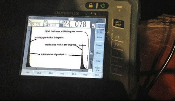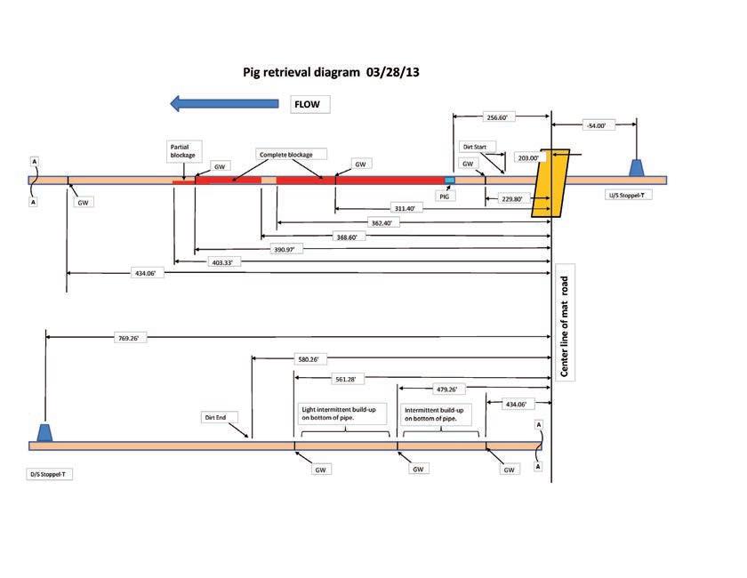 ‘Ultrasonic inspection results showed that about 45 metres of pipeline was solidly impacted with sediment buildup and it had to be cut out and removed.’ Stephen Cox / 15