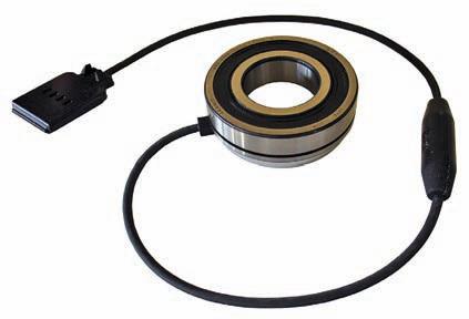 Sensor bearing protects against power surge damage SKF’s sensor bearing, equipped with an elec tromagnetic compatibility (EMC) filter, offers protection against potential damage to the bearing’s sensitive electronics from power surges or electric discharges, most notably in AC electric motor applications. The EMC filter is integrated in-line with the sensor bearing’s cable to protect the Hall sensor and other electronics in the bearing and can help improve bearing reliability and service life. All SKF sensor bearings serve as ready-to-mount, plug-andplay units incorporating a shielded sensor and versatile deep-groove ball bearing. The sensor body, impulse ring and bearing are mechanically attached to each other to form an integral unit retaining tight tolerances within the bearing. In ad-