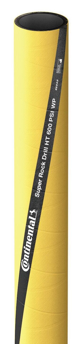 Nouveau boyau d’air robuste Super Rock Drill 600 HT de Continental. Conforme aux directives de l’ARPM relatives à une usine de sécurité 4:1, ce boyau supporte une pression de travail de 600 psi. Son caoutchouc en EPDM offre une bonne résistance à l’ozone dans les applications extérieures. Ce boyau ARPM classe B en PE-C supporte la chaleur, résiste moyennement à l’huile et convient à une température de fonctionnement jusqu’à 135 °C. Ce tuyau industriel noir comporte des câbles torsadés permettant une pression de travail et des températures élevées. Il comprend un revêtement en EPDM jaune conforme aux normes de résistance à l’ozone de l’industrie. www.continental.com