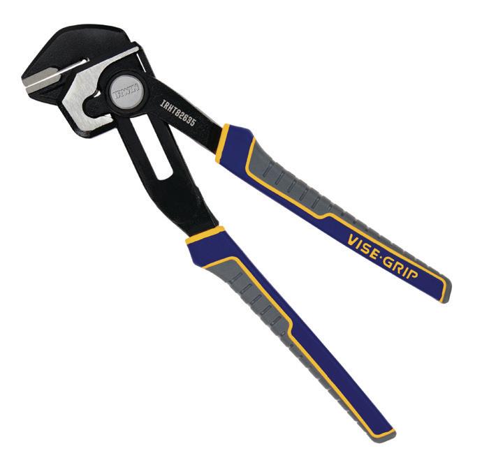 Les pinces-étaux Vise-Grip d’Irwin sont offertes avec des mâchoires lisses pour une utilisation sans dommage et un mécanisme à cliquet GrooveLock. Les mâchoires antimarques minimisent les dommages aux pièces chro mées et plaquées. Cet outil remplace les clés métriques et impériales jusqu’à 38 mm. Offertes en modèles 8 et 10 pouces, ces pinces sont équipées de poignées à double matériau ergonomiques et antipincement. www.irwin.com