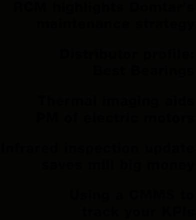 This edition is also a great read for anyone interested in learning more about reliability centred maintenance (RCM), as our lead case study — Decade of Change Makes Mill a Leader — tells about its application at Domtar’s paper mill in Windsor, QC. And in CMMS Solutions, Peter Phillips explains several important steps to take before your CMMS can provide results regarding Key Performance Indicators when using RCM.