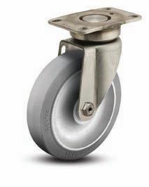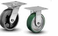 Albion’s heavy-duty casters are engineered for loads from 1,500 lb to 20,000 lb in applications including conveyors and heavy-duty power-drawn equipment, aircraft assembly and maintenance equipment, gantries and fuel cell transport. Depending on the series, the casters feature top plates and yokes constructed from cold-formed 1/4-in. steel plate to 1-in.-thick 1045 AISI heat-treated steel plate. Swivel configurations offer load races from 3 1/4 in. to 11 in. in diameter, and axles range from 1/2 in. to 2 1/2 in. thick. The company offers many bearing and locking wheel/brake options, and various wheel and tread materials. Select models offer antimicrobial wheels.