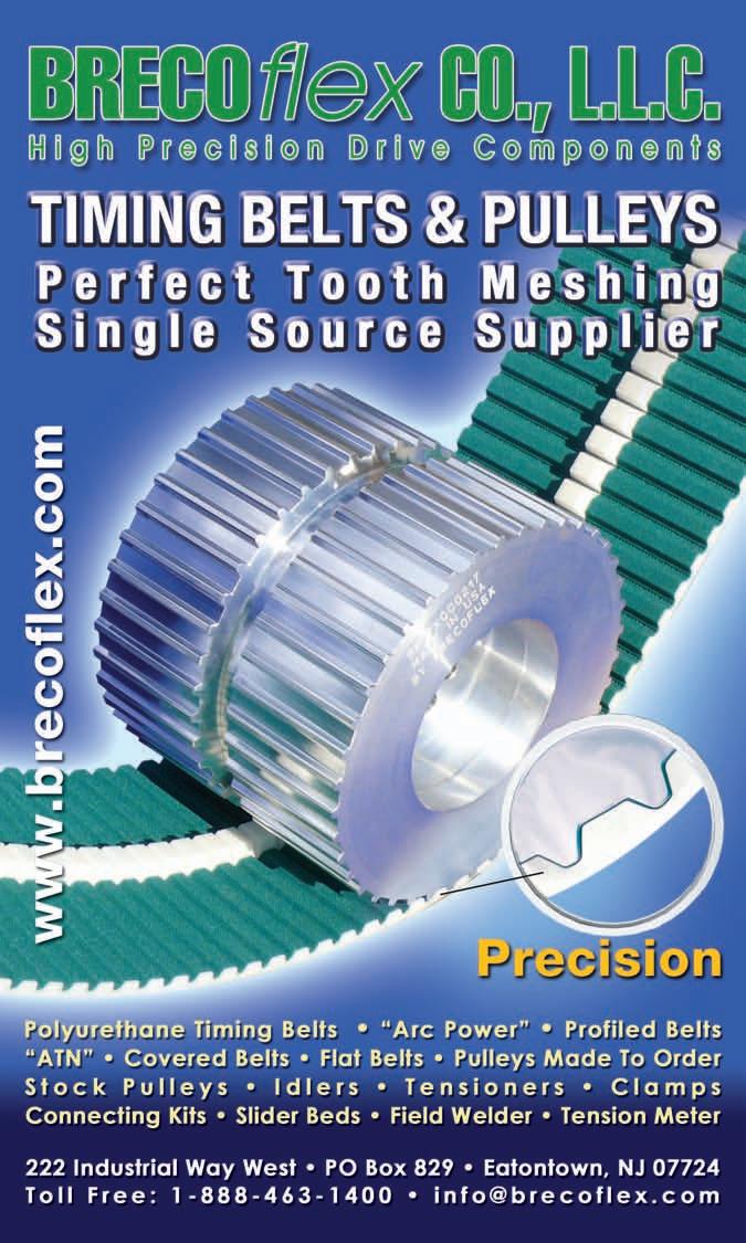 Lead times for the delivery of metal parts for the timing belt industry have been reduced by Brecoflex. Made-to-order timing pulleys, flat belt pulleys and idlers, as well as