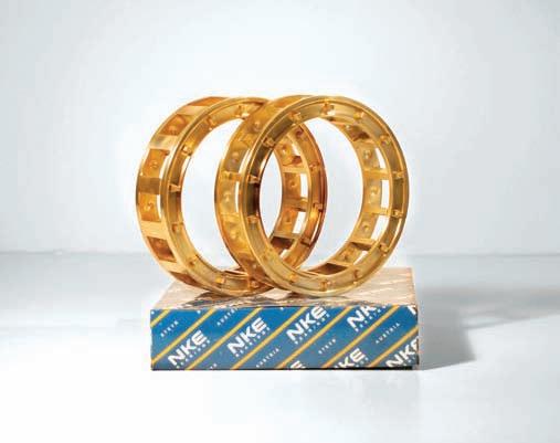 NKE’s solid brass bearing cages feature an improved design. Their reduced mass helps the cages cut the rolling bearings’ energy absorption and it prevents sliding friction. The company says that it has cut cage mass by nearly onefifth compared to the previous design with-