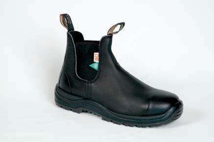 Designed for harsh conditions, Blundstone’s lightweight and durable CSA-approved Greenpatch footwear features added cushioning for all-day comfort and a heat-formed heel for a snug fit. Deluxe Poron foot beds provide support for the back and heels. Weather proof elastic and leather keep the feet dry, while also allowing them to breathe. For safety in tough envi ronments, a broad-fitting tempered steel, Grade 1