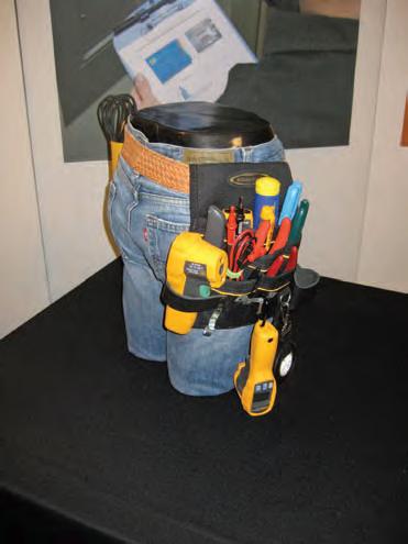 Left: “We try to make the invisible visible,” said Jim Cavoretto, Fluke’s chief technology officer. Centre: Fluke plant electrician Steve Ottman gave a demonstration of a thermography tool to find electrical hotspots. Right: The toolbelt on this mannequin showed how easily compact test instruments can be carried.