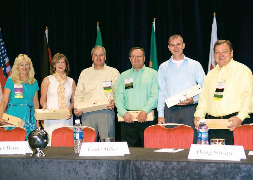 1. Cam Lawrence, BDI Canada; Frank Mascia, Timken Canada; Tom Karch, SKF Canada; and Michael St. Jacques, NSK Canada. 2. Dermot Strong, Motion Industries (Canada), with Chip Myer and Ceil Diaz, Oilite Bearing. 3. Russel Grant, Wajax Industrial Components; Mitch Bouchard, General Bearing Service; and Dan Killory, Dichtomatik Americas. 4. Marc Joanis and Yvon Goudreau, Wajax Industrial Components. 5. Ben Nations, Bearings & Drives; Brian Negri, Jamaica Bearings; Chris Curran, Climax Metal Products; and Brian Davis, Bearings & Drives. 6. Taka Fukuda and Shota Mamiya, Fukuda Corporation. 7. Lorna and Gregg Robinson, RotoPrecision Inc. 8. Olga and Paul Meo, NTN Bearing Corp. of Canada. 9. BSA board members were presented with branding irons after the association’s annual business meeting by outgoing president James Webster, DXP Enterprises. Linda Miller, Bearings & Drives (far left) was elected president of the BSA for 2012-13. 10. This ten-foot-long resident of