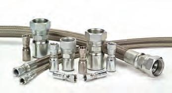 and SC-TW series hoses. The carbon steel offering now includes hose fittings for -8, -12 and -16 size hoses, while the stainless steel offering covers -4 through -16 size hoses. The fittings are available in both male pipe and female 37-degree swivel-end configurations in both materials. The steam-compatible hose features good flex life, high-temperature resistance and chemical resistance. Typical applications include those in steel mills and foundries.