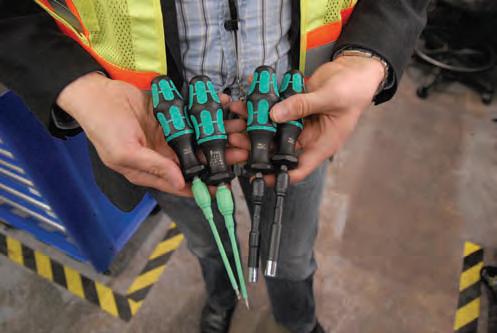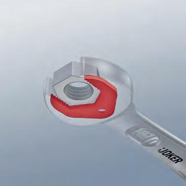 The Joker, a new combination wrench from Wera, not only does everything that a combination ratchet wrench needs to do, but more. It offers a practical holding function that allows nuts and bolts to be held in the jaw and easily positioned where they are needed. Fastening onto the thread can then be done quickly and precisely. It also prevents slipping off of the fastener head with an integrated limit-stop – no longer is the thumb needed to act as a depth stop. This allows significantly more force to be applied during fastening jobs. Double-hex geometry delivers a positive connection with nuts or bolts. An exchangeable, hardened-metal gripping plate in the Joker’s mouth bites into the bolt with extremely hard tips. Both fea tures combine to prevent any slipping. Fi nally, where conventional wrenches with a 60° return angle have to be turned over and over to tighten or loosen bolts and nuts in confined spaces, the Joker offers a 30° re turn angle, due to its double-hex de sign. Along with its straight neck, this means that flipping the wrench has become a thing of the past. The ratcheting mechanism at the ring end of the Joker has a fine tooth design with 80 teeth, enabling operation even when the space is very confined.