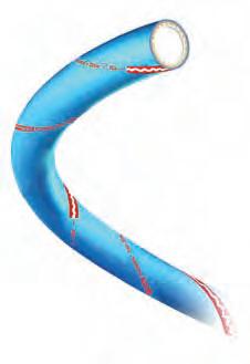 ContiTech has introduced two hoses that ensure a high standard of hygienic safety. The Fluoropal Food + Drink is a stur dy, multi-purpose hose developed for use both in the food and beverage industry, and in the pharmaceutical and cosmetics industries. Its white, smooth, non-porous inner lining, made of high-grade Teflon, is especially well-suited for the pas sage of liquids with a high grease or oil content. Resistant to most cleansing agents, disinfectants and vir tually all chemicals, the hose can withstand temperatures up to 150°C. The flexible Purple Snake beer and spirits hose features optimized cleaning and disinfecting properties, and is also resistant to mechanical loads.