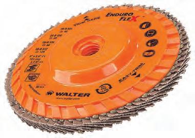 Walter Surface Technologies launched an improved, longer-life EnduroFlex finishing disc for metalfinishing applications at the Montreal Manufacturing Technology Show in May. It features a totally new design and flap configuration with an exclusive cloth and abrasive composition. The backing can be trimmed down, adding longevity to the product. This innovation offers a more consistent surface finish, and most importantly, removes more material. A 5-in. disc with Grit 40 removes up to 2,500 grams over its lifespan. The longevity results in fewer disc changeovers as well as less waste over the long term. It’s designed for finishing steel and stainless steel, aluminum and other alloys.