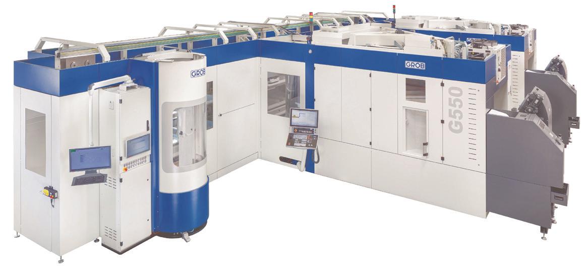 GROB Systems developed the linear pallet storage system (PSS-L), an automated, flexible manufacturing line that complements a variety of part types.
