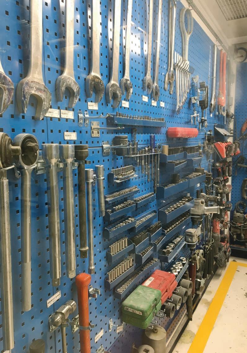 An important element of a professional maintenance department is cleanliness and organization of technicians’ personal and team workspace. The 5s and other programs have reenergized the maintenance workspace as seen in the photographs. The personal workspaces and workshop look professional and contribute to the technicians’ work habits when they are performing maintenance