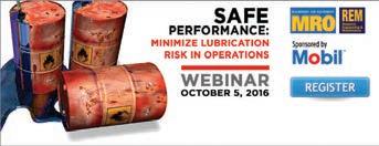 This month Machinery and Equipment MRO wraps up its three-part webinar series focusing on oil and lubrication, but it’s not too late to download a complimentary copy. Sponsored by Mobil Industrial Lubricants, the series features a veritable panel of experts, who answer questions and share tips on topics ranging from how using high-performance lubricants may reduce lubrication intervals; how to minimize lubrication risk in operations; and the lubricant’s role in energy efficiency.