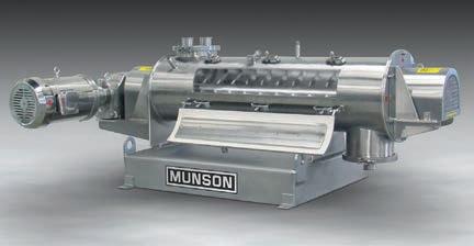 A new sanitary, high-intensity continuous blender, Model HIM-124-S316, from Munson Machinery provides low to high shear as required for high-speed blending and homogenizing of dry solids, agglomerates, slurries or pastes when processing food, chemicals, pharmaceuticals or other contamination-sensitive materials. Homogeneous blends can be achieved in as little as 20 seconds residence time depending on material characteristics, at throughput rates to 5.7 m3/h. Liquids can also be added in small to large amounts through optional injection ports for de-dusting and agglomerating of dry materials, as well as for producing pastes, emulsions and slurries.