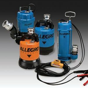 Allegro Industries offers four models of dewatering and sludge pumps, which offer continuous operation at low water levels and extended dry runs without overheating the motor. These portable, submergible pumps are excellent for manholes, vaults, construction sites, and all dewatering needs. The DC Submersible Dewatering Pump is a totally enclosed, submersible dewatering unit. Watertight o-ring seals keep the pump’s internal parts completely dry and it delivers up to 43 gallons per minute (gpm) for rapid dewatering and instant prime.