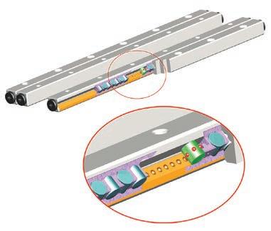 NV-type studrollers with anti-creep cage technology are suitable for compact applications requiring extremely fast acceleration/ deceleration and minute motion. NVtype studrollers eliminate cage-creep, guarantee zero-slippage, and increase effective rollers up to 53 per cent while also offering increased load capacities up to 2.3X over conventional slide ways and an extended roller-to-rail contact area up to 58 per cent. Available in Canada in 30-600 mm lengths and 2-12 mm roller configurations from RotoPrecision Inc.