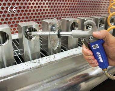 Exair’s new Soft Grip Back Blow Safety Air Gun delivers a blast of air to effectively blow debris and liquids from pipe or hose inside diameters, channel, bores, holes, internal threads and other internal part features. An array of holes on the Model 1006SS Back Blow Air Nozzle provides a forceful back-facing 360-degree airflow to clear out coolant, chips and light oils from machining processes. This nozzle prevents blowing chips further into a part, tube or pipe. Ergonomic design. www.exair.com/qtr_bbsag.htm