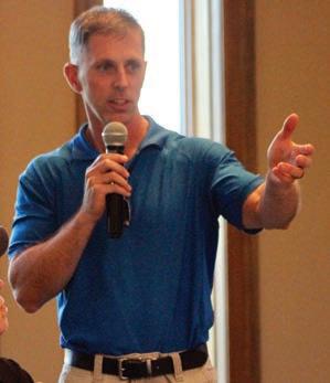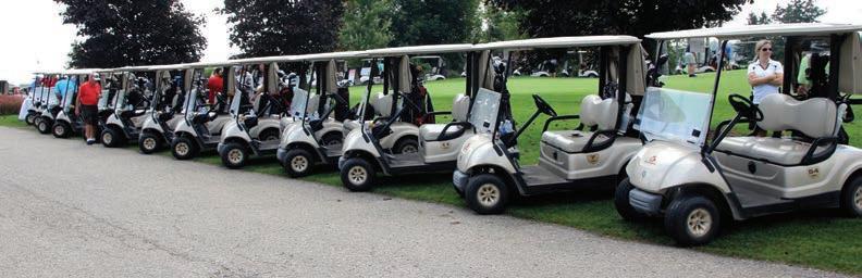 Carts were ready to go for the EMC Woodland Classic. (Insert) Shawn Casemore, President, EMC, speaks to the crowd.