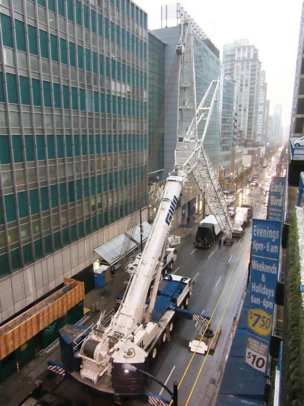 At the onset of the project, booking a date for a road closure to facilitate the delivery of equipment to the site, which required the set-up of a 500-ton mobile crane, was a major project challenge. As the site was located on a major downtown street, shutdowns were limited to a few weeks each year, to avoid impact to other municipal road shutdowns and seasonal traffic requirements. Once a road closure and lift date were