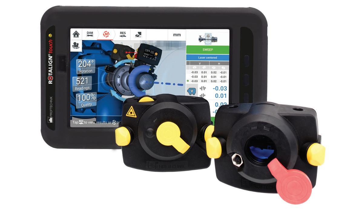 PRUFTECHNIK ROTALIGN touch EX is for maintenance professionals working in explosive atmospheres. It is ATEX/ IECEX Zone 1 certified, eliminates the bureaucracy of “hot work permits,” and simplifies alignment in EX areas. Maintenance technicians in the oil and gas, petrochemical, and chemical processing industries can use the PRUFTECHNIK single-laser technology and a ruggedized tablet with touchscreen to perform laser shaft alignment.