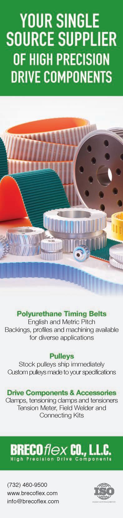 Belts are available in B cross-sections from 135 to 660" long, as well as 9/16” round belts from 155 to 447" in length. www.carlislebelts.com