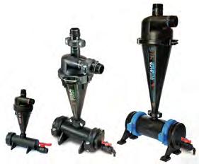 The HN Series is offered in three sizes. The one-inch cone is made of glass filled polyamide (PAG), while the two- and three-inch cones are made of glass filled polypropylene (PPG). Other highlights: ends are alfa rapid grooved, MNPT, or MNPT Union; o-rings are nitrile; and bleed tank and flush valve are included. www.chemline.com/hydro-cyclones-hn