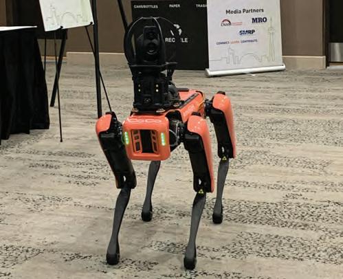 (Right) Coco, the robot dog from Cohesive, was at the conference.