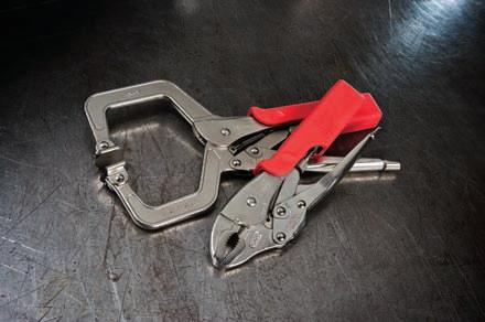 nesses at a preset pressure without any user adjustment. Features include strong jaws, angled tooth pattern and a nickelplated finish to protect against rust and corrosion. The line currently includes a 10-in. curved jaw with wire cutter and an 11-in. C clamp in swivel-pad and regulartip versions. The line soon will expand to include 5-in. and 7-in. curved jaw styles and 6-in. and 9-in. C clamps. The tool is suited for welding, metal fabrication and HVAC applications, general maintenance and repair operations, automotive service and many other uses.
