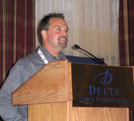 John Morrison, vice-president of supplier relations for IDI, speaks to delegates at the group’s annual meeting.