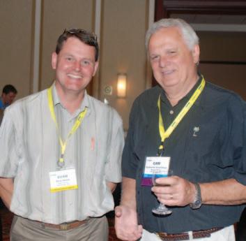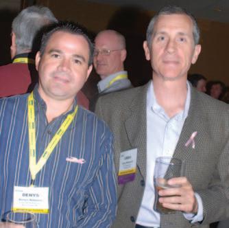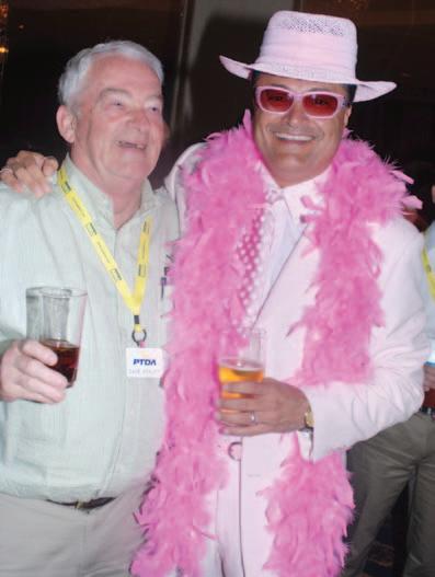 Strutt of Ontario Belting & Transmission and PTDA’s Canadian representative, who was back in the saddle after a sick leave, shares a laugh with Paul Meo, NTN Canada. Meo — on a dare — dressed flamboyantly at a PTDA reception as a fundraising stunt. He garnered over $600 for cancer research.