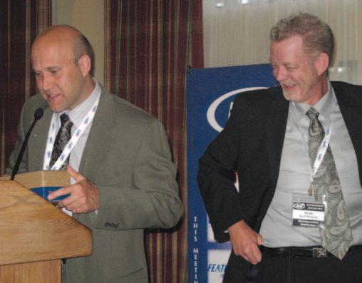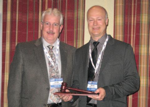 Craig Urquhart (l) passes the gavel to Michel Vezina, IDI’s incoming chairman for 2010-2011.