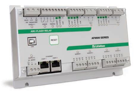 and send a trip signal to an upstream breaker to interrupt the fault. The sensors are equipped with a visual indicator to monitor their health. This allows workers to verify immediately that the sensors are operating properly and offers protection without inspecting the relay, which is often located in another compartment. The relay includes an Ethernet interface and supports Modbus TCP communication. A USB port is used to access event logs and to configure complex systems with multiple power sources. Littelfuse www.littelfuse.com/protectionrelays